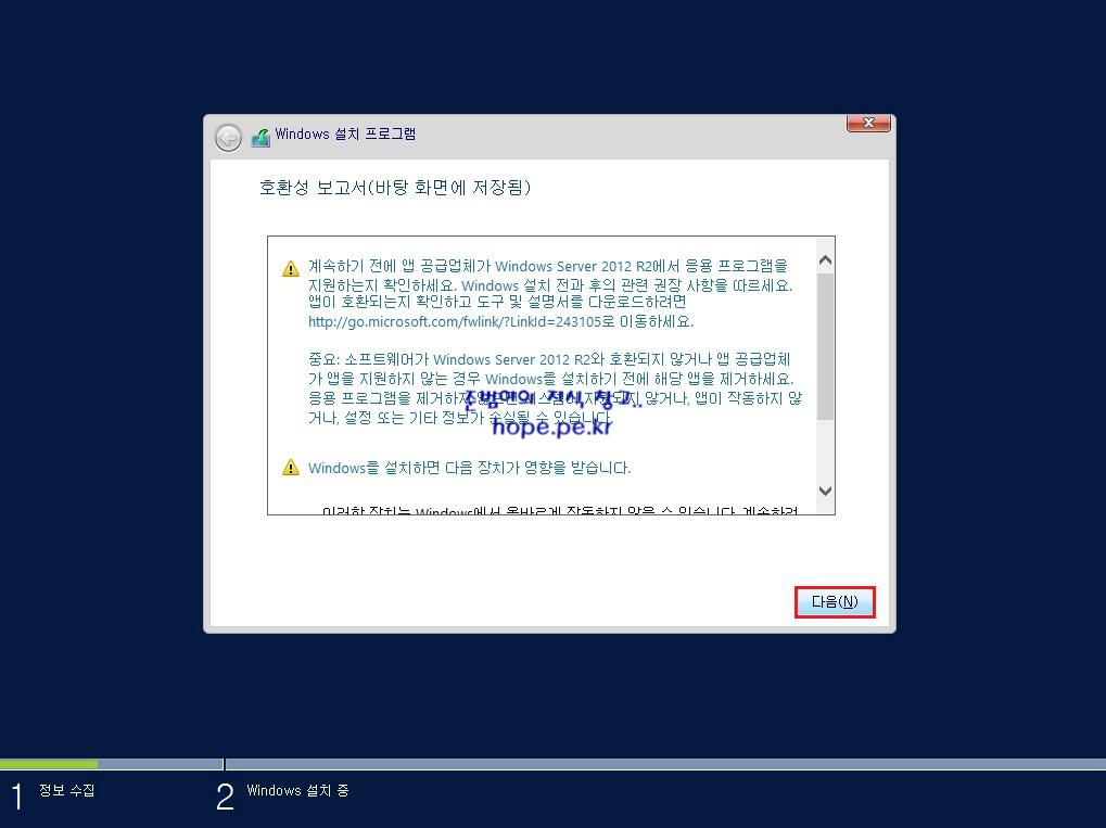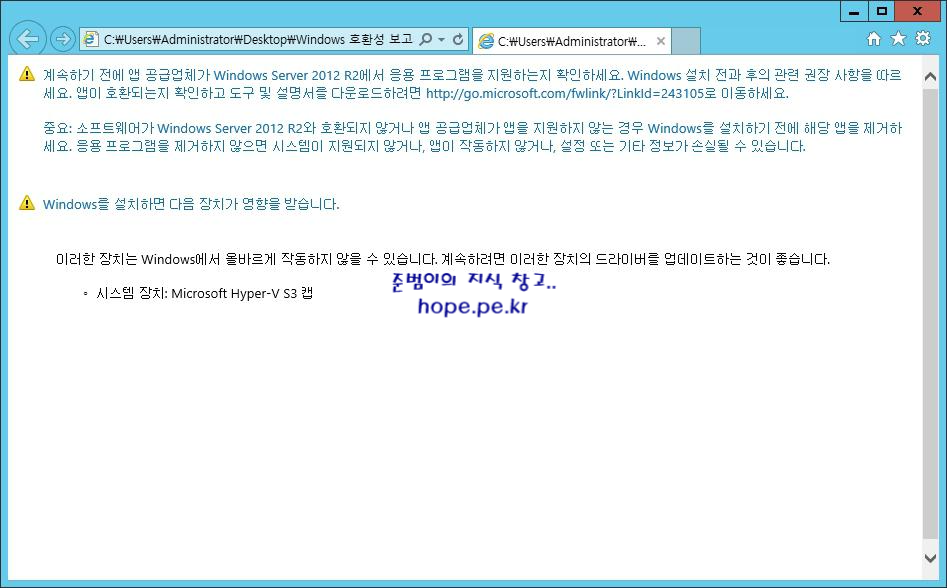 cf) 기존에 운영중인 응용 프로그램과 Windows Server 2012 R2 와의 호환성 을 점검 후 보고서 형태로 보여줍니다. 반드시 사전에 호환성 여부를 확인하셔야 합니다.
