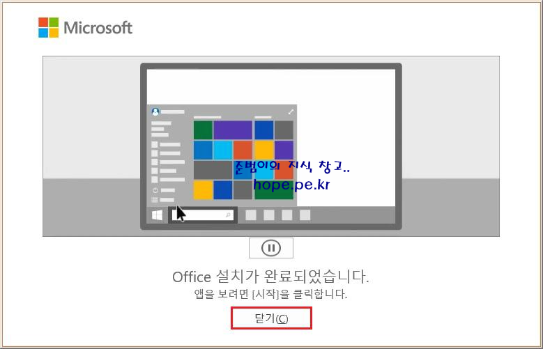 Office 설치가 완료되면 '닫기' 를 클릭 합니다.