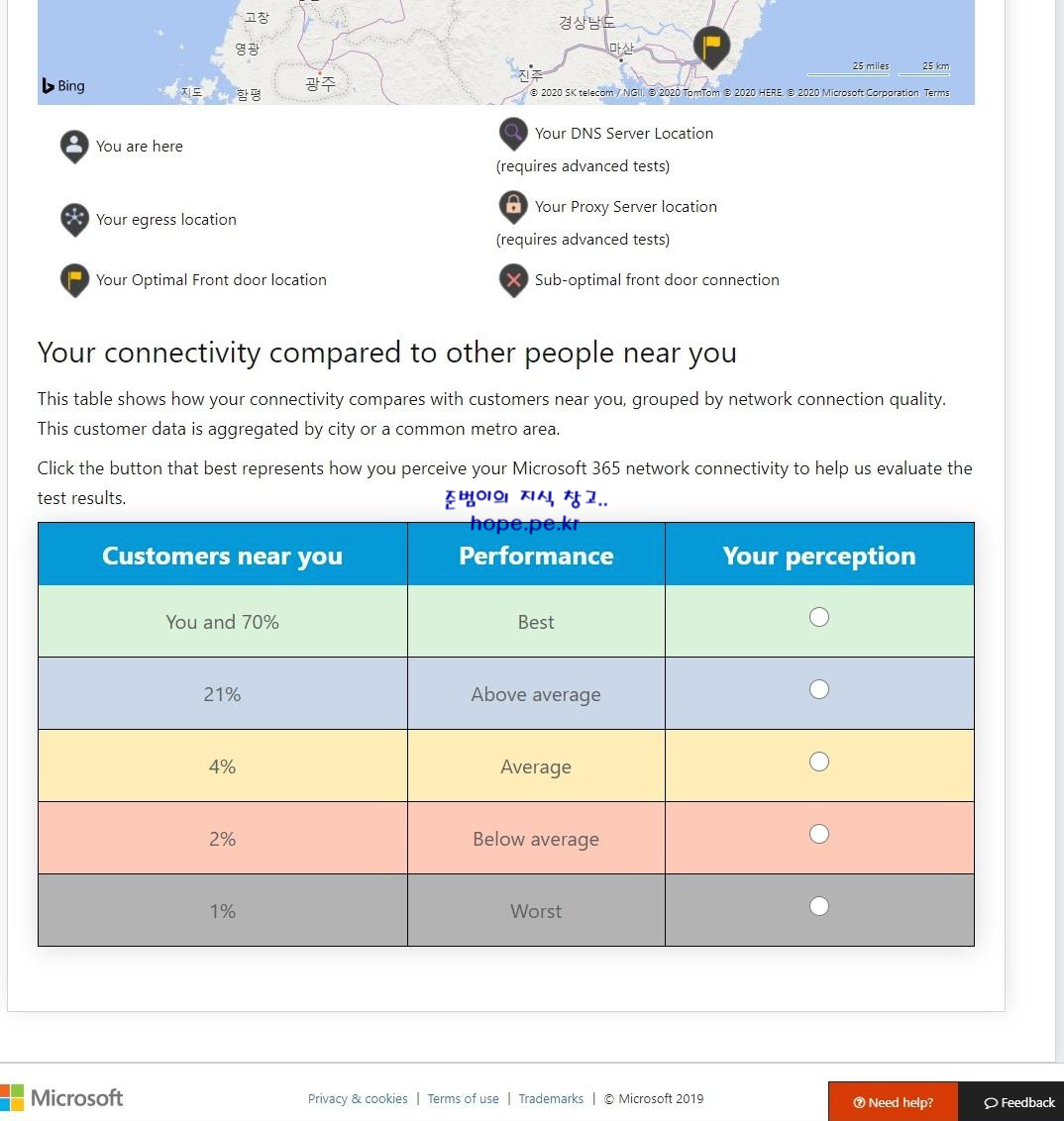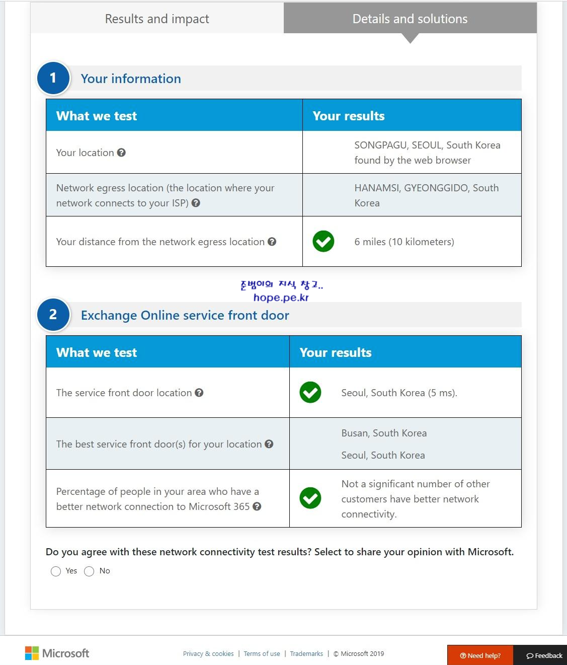 일정 시간 후 현재 위치에서의 Office 365 Network 연결 테스트 결과가 표시 됩니다.