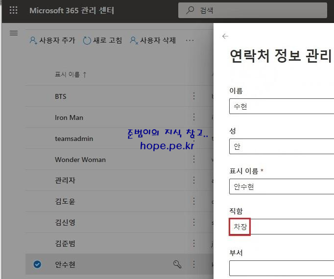 사진 뿐만 아니라 사용자의 연락처 정보 관리 항목의 직함 정보인 차장을