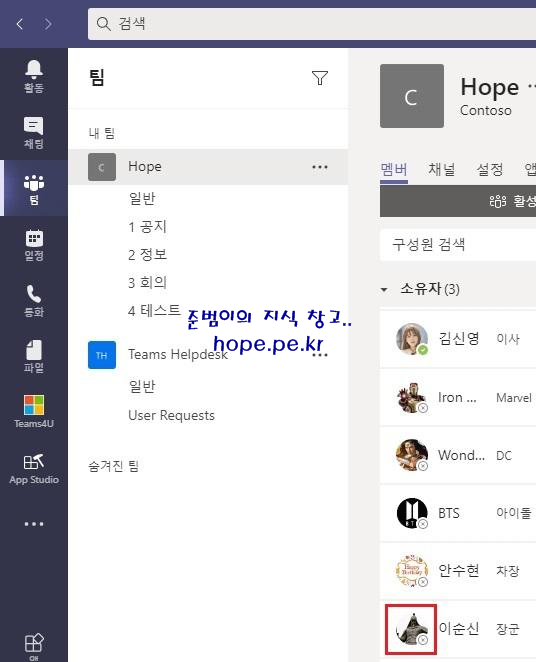 Cf) Teams 캐쉬 삭제 후 재로그인 하면 아래와 같이 업데이트 된 사진을 확인할 수 있습니다.