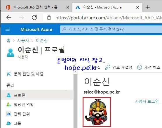 사진과 동일하게 'Microsoft Azure Portal' 의 사용자 프로필 에는 바로 적용 되나