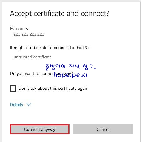 'Connect anyway' 를 클릭 합니다.