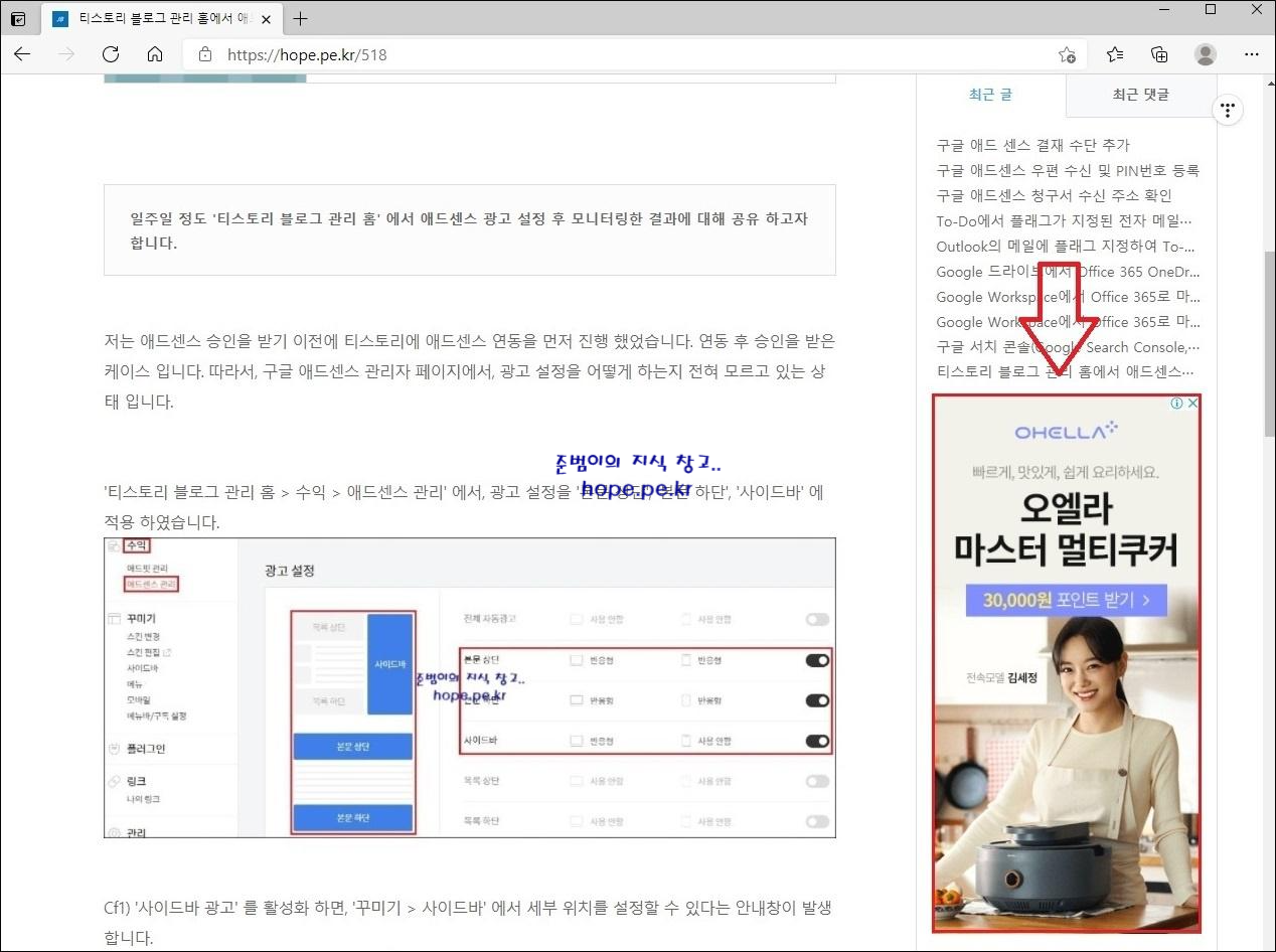 5. 사이드바 자동 광고 - 사이드바 내 광고가 또 표시 됩니다. 마음에 들지 않습니다.