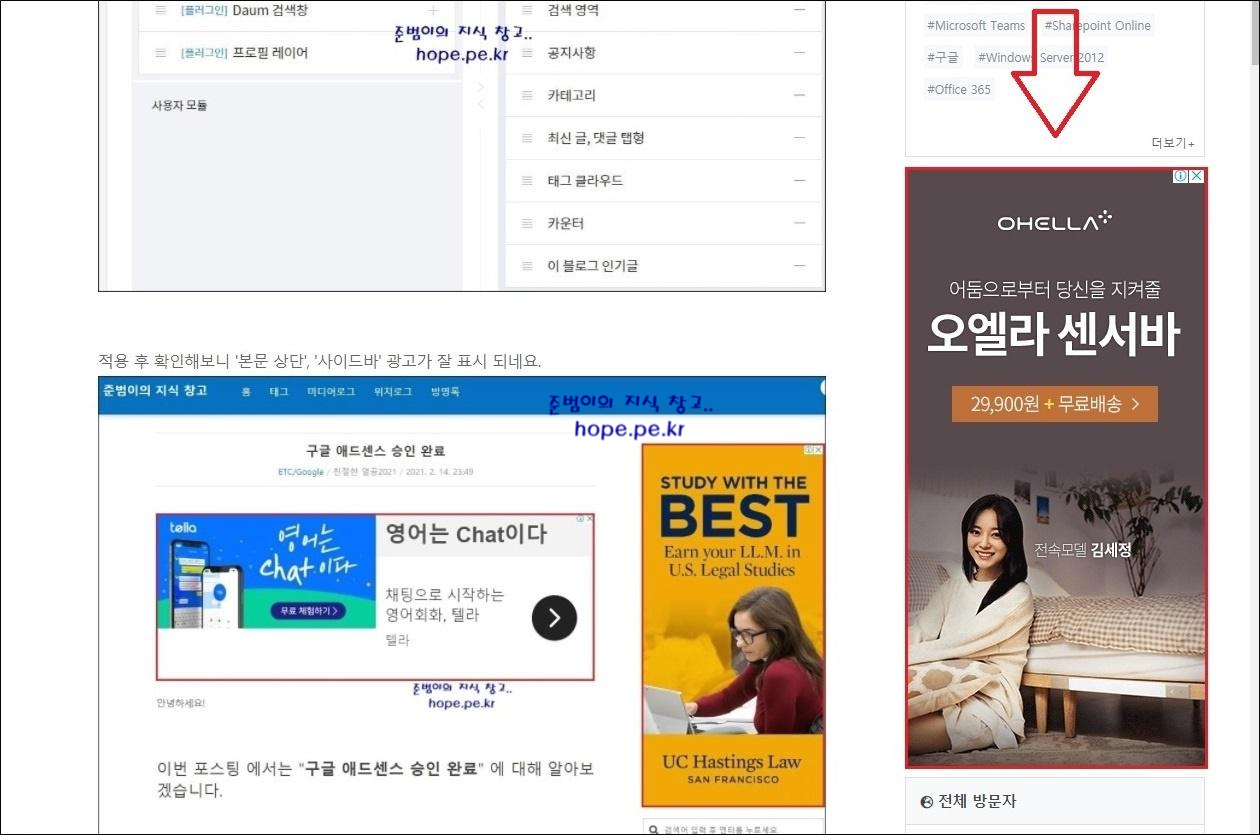 이전 포스팅에서 '애드센스 광고 설정' 을 아래와 같이, '본문 상단', '본문 하단', '사이드바' 를 사용 하면 일부 포스팅에 광고가 제대로 표시되지 않고 'Google AdSense' 로고만 표시 되는 이슈가 발생한다고 설명 드렸습니다.