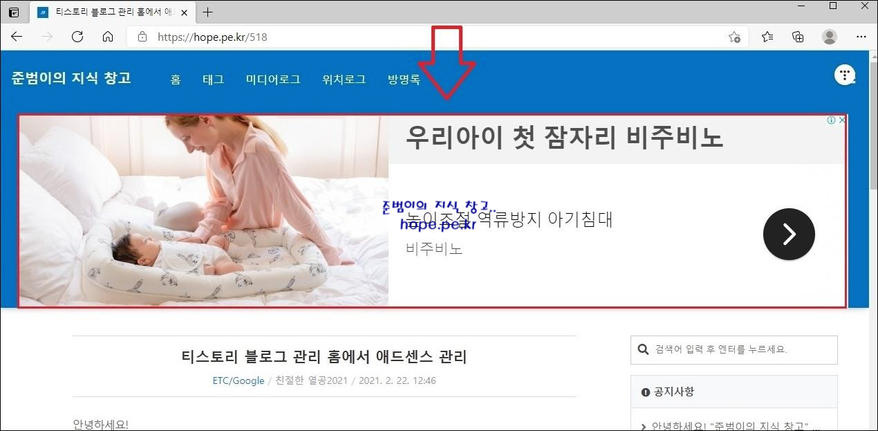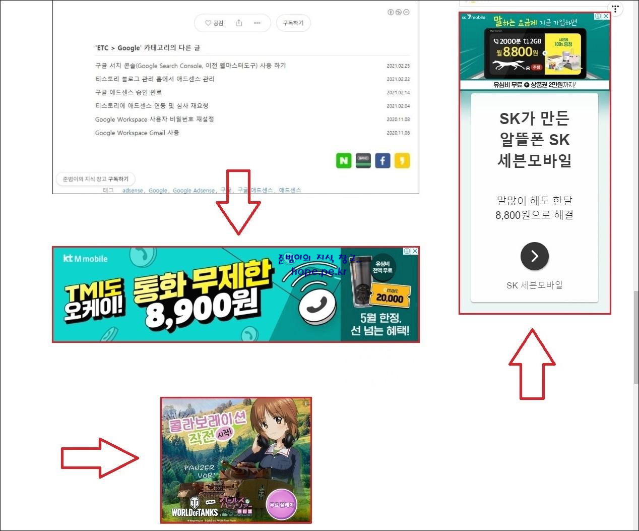 2. 검색 엔진에서 검색후 직접 블로그에 방문했을때는 광고가 제대로 표시되었습니다. 하지만 블로그 내 다른 포스팅으로 이동 시 광고가 제대로 표시 안되는 경우도 많습니다.