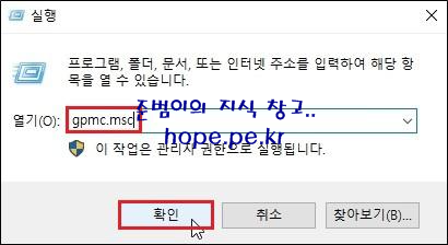 실행 창(Windows Key + R Key)에서, 'gpmc.msc' 입력후 '확인' 을 클릭 합니다.