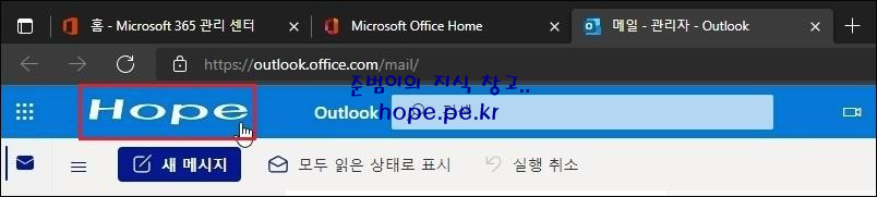 적용된 테마 화면을 'Microsoft 365 & Office 365 포탈' 그리고 'Microsoft 365 관리 센터' 그리고 'Outlook' 에서 살펴보겠습니다.