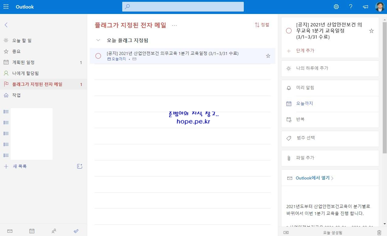 이상으로 "Outlook의 메일에 플래그 지정하여 To-Do에서 사용하기" 방법에 대해 알아보았습니다.