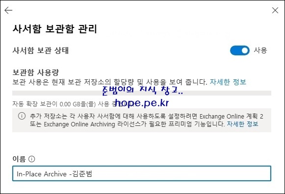 이상으로 "Exchange Online 보관 사서함 설정" 방법에 대해 알아보았습니다.
