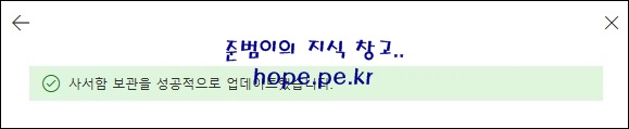 '사서함 보관을 성공적으로 업데이트 했습니다.' 메세지를 확인합니다.