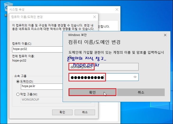이제부터 컴퓨터를 도메인에 가입 시킬 때 해당 계정 정보를 입력하면