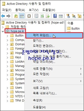 '도메인' 에서 우클릭 후 '제어 위임' 을 클릭 합니다.