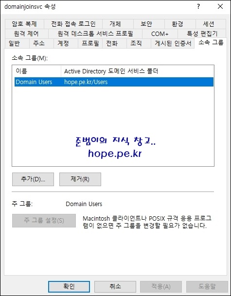 참고로 해당 계정의 소속 그룹을 확인해보면, 'Domain Users' 그룹에만 속해있는 단순 사용자 계정입니다.