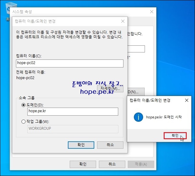 이제부터 컴퓨터를 도메인에 가입 시킬 때 해당 계정 정보를 입력하면