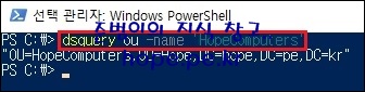 마지막으로 PowerShell에서 다음 명령어를 실행하여, 도메인 가입 컴퓨터 개체가 자동으로 저장되는 OU를 지정합니다.