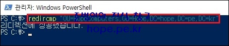 redircmp "OU=HopeComputers,OU=Hope,DC=hope,DC=pe,DC=kr"