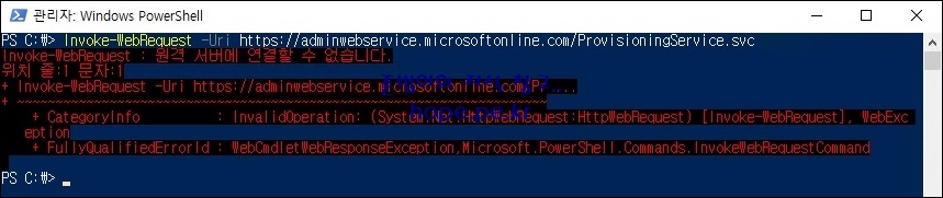 PowerShell에서 다음 명령어를 실행하여, Microsoft Entra Connect 서버가 웹 요청을 허용하는지 확인합니다.
