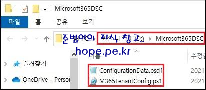 그리고 자동으로 내보내기 한 경로로 파일 탐색기 창이 실행되며 'ConfigurationData.psd1' 파일과 'M365TenantConfig.ps1' 파일이 생성 됩니다.