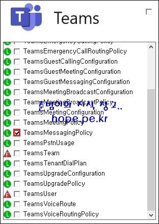 Teams 에서, 'TeamsMessagingPolicy' 를 클릭 합니다.