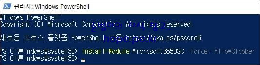 Windows PowerShell 을 관리자 권한으로 실행 후, 'Install-Module Microsoft365DSC -Force -AllowClobber' 명령어를 실행 합니다.