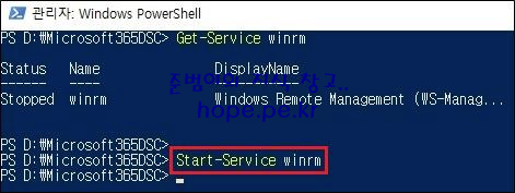 'Start-Service winrm' 명령어를 실행해 winrm 서비스를 시작 합니다.