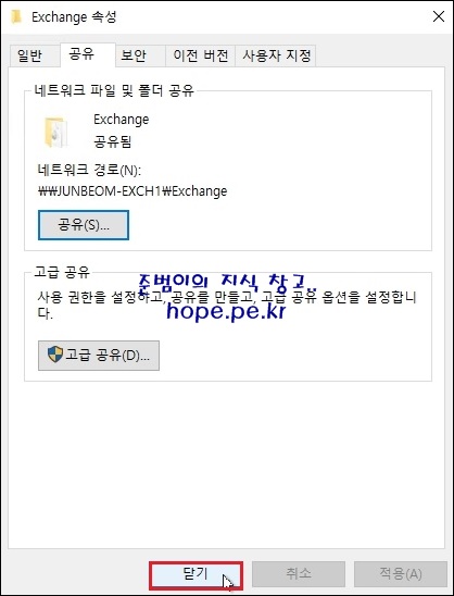 '닫기' 를 클릭하여 폴더 속성 창을 닫습니다.