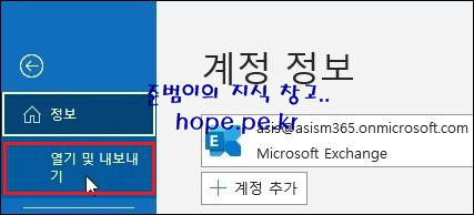 계정 정보 화면에서, '열기 및 내보내기' 를 클릭 합니다.