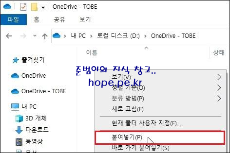 TOBE OneDrive 폴더에서 우클릭 후 '붙여넣기' 를 클릭 합니다.