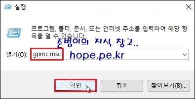 Active Directory 서버의 실행 창 (Windows Key + R Key) 에서, 'gpmc.msc' 입력 후 '확인' 을 클릭 합니다.