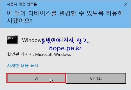 사용자 계정 컨트롤 창이 발생하면 '예' 을 클릭 합니다.