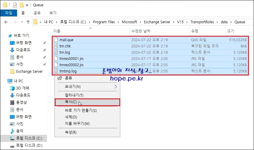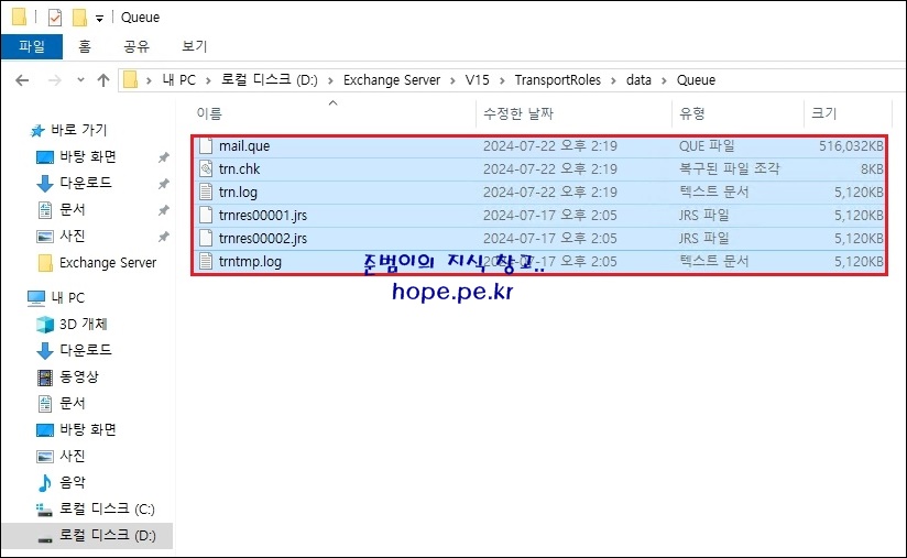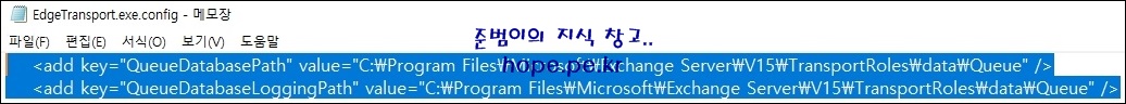 이에 최초 Exchange 디자인시 별도의 드라이브에 큐 데이터베이스 저장을 권장 드립니다.