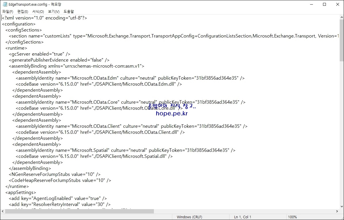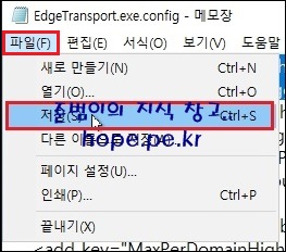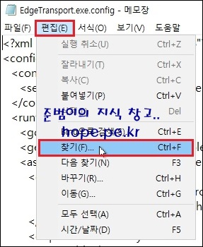EdgeTransport.exe.config 파일이 실행됨을 확인 합니다.