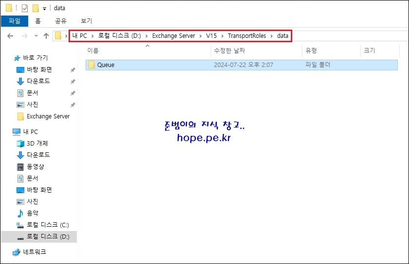 이번 포스팅에서는 "Exchange Server 2019 큐 데이터베이스 이동" 방법에 대해 알아보겠습니다.