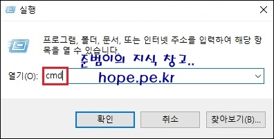 실행 창 (Windows Key + R Key) 에서, 'cmd' 입력 후 'Ctrl Key + Shift Key + Enter Key' 를 동시에 눌러 관리자 권한으로 실행 합니다.
