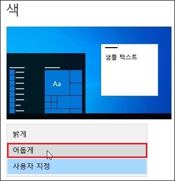'어둡게' 를 클릭합니다.