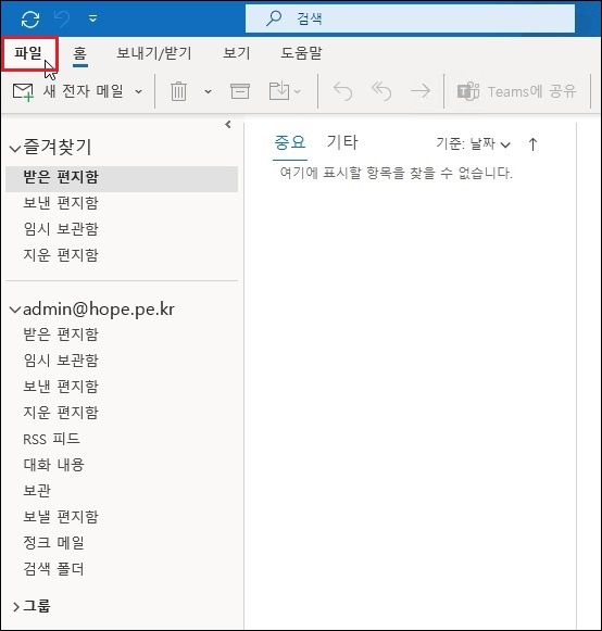 Outlook의 경우에는 '파일' 을 클릭합니다.
