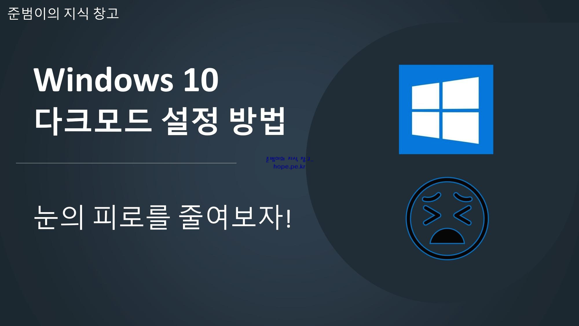 YouTube 영상: Windows 10 다크모드 설정 방법 - 눈의 피로를 줄여보자!