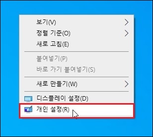 세번재, 가장 간단한 방법으로 '바탕화면'에서 우클릭후 '개인 설정' 을 클릭합니다.