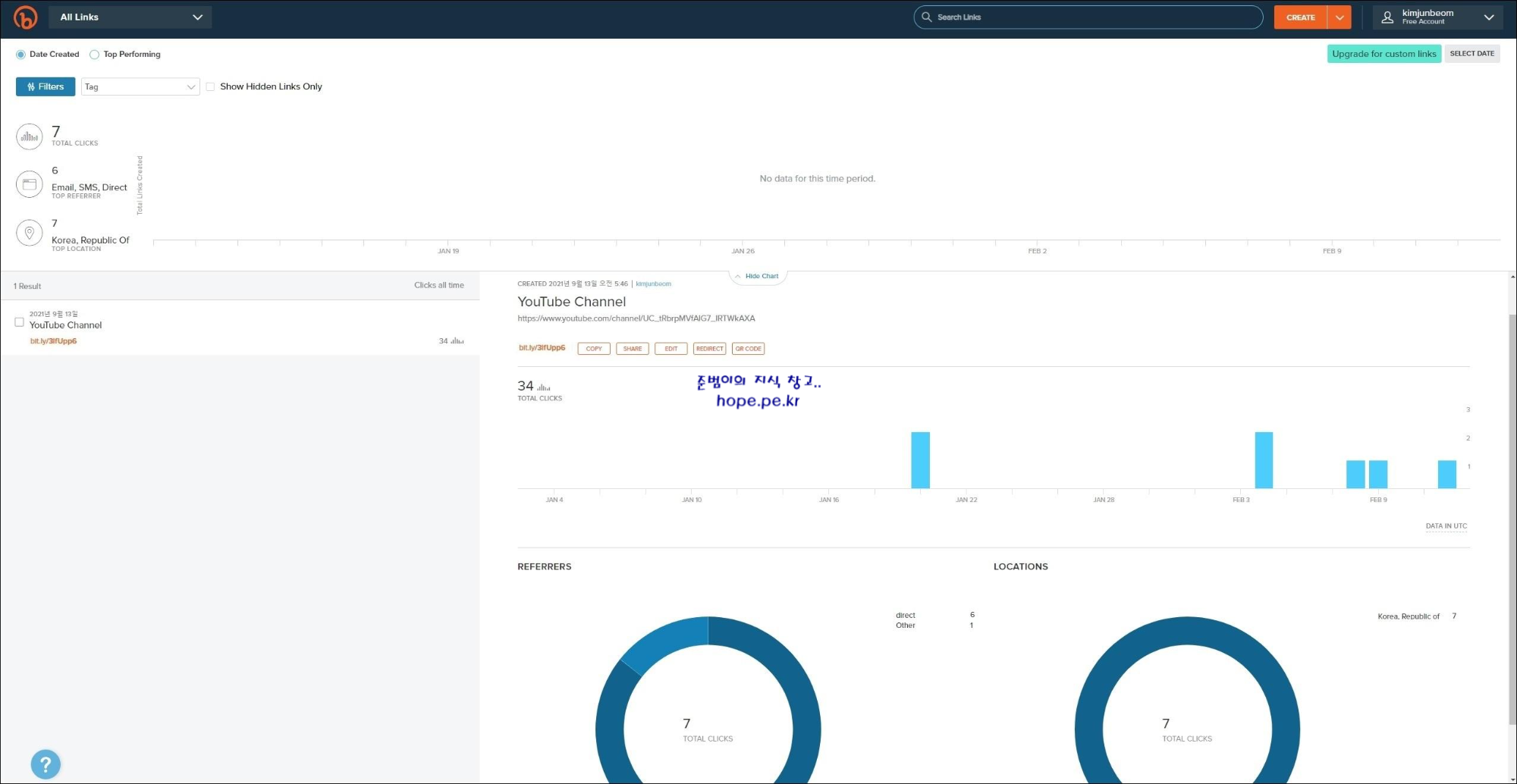 이제 링크를 일정 기간 사용해보면 다음 화면과 같이 해당 링크에 대한 여러가지 레포트를 확인할 수 있습니다.