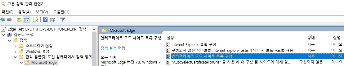 참고로, Edge 그룹 정책 및 그룹 정책을 설정하기 위해서는 선행 작업이 있습니다.