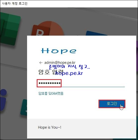 암호 입력 화면에서, '암호' 입력후 '로그인' 을 클릭 합니다.