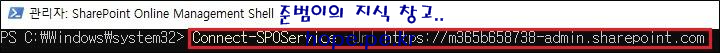관리자: SharePoint Online Management Shell 창이 실행되면, 다음 cmdlet 을 실행 합니다.