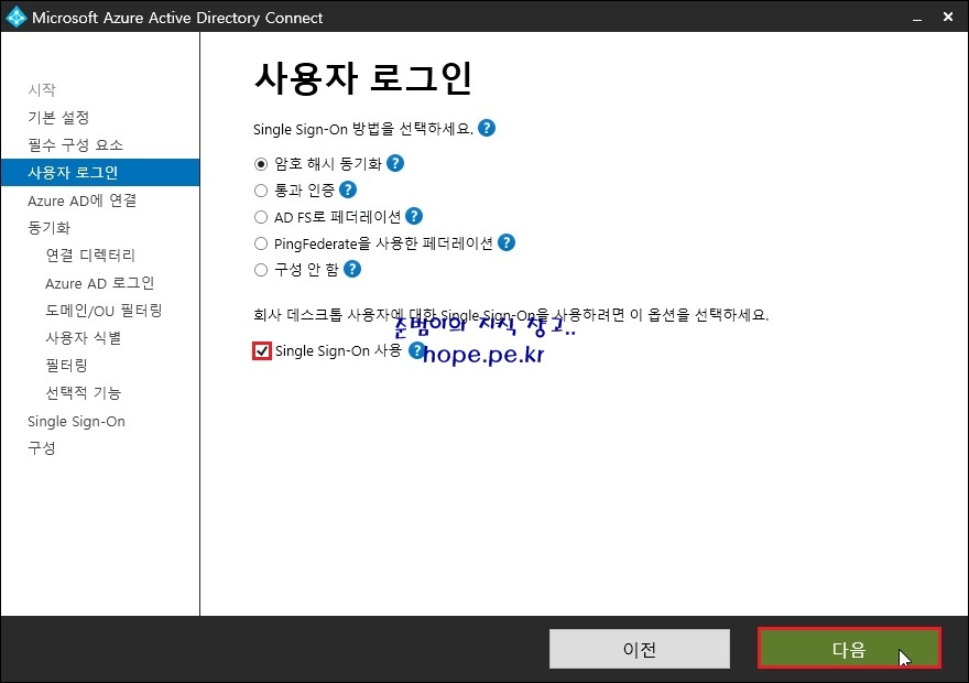 이상으로 "Windows Server 2019 환경에서, Azure AD Connect 설치" 방법에 대해 알아보았습니다.