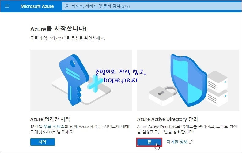 Azure 포탈 사이트에 로그인후 '뷰' 를 클릭 합니다.