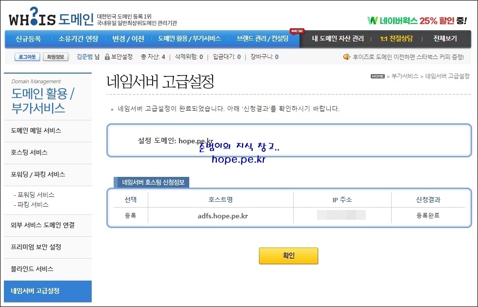 참고로 구매하고자 하는 도메인 이름은 DNS에 등록되어져 IP 조회가 되어야 합니다.