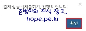 결제가 완료되면, 결제 성공 - [제출하기] 진행 바랍니다. 메세지가 발생 합니다. '확인' 을 클릭 합니다.