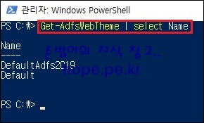 다음 cmdlet을 실행하여, DefaultAdfs2019 테마를 복사하여 Hope2022 테마를 새로 만들어냅니다.
