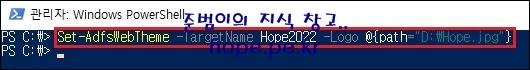 다음 cmdlet을 실행하여 Hope2022 테마를 현재 ADFS 로그인 페이지에 적용 합니다.