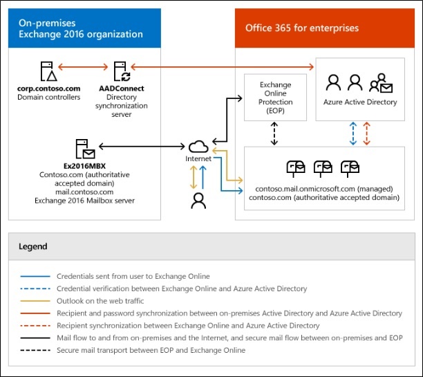 그리고 Exchange Online으로 조직의 모든 사서함을 이전하기 이전 중간 단계로 하이브리드 배포를 활용할 수도 있습니다.